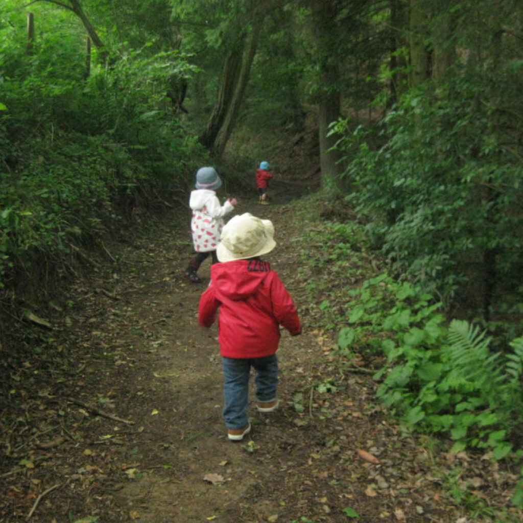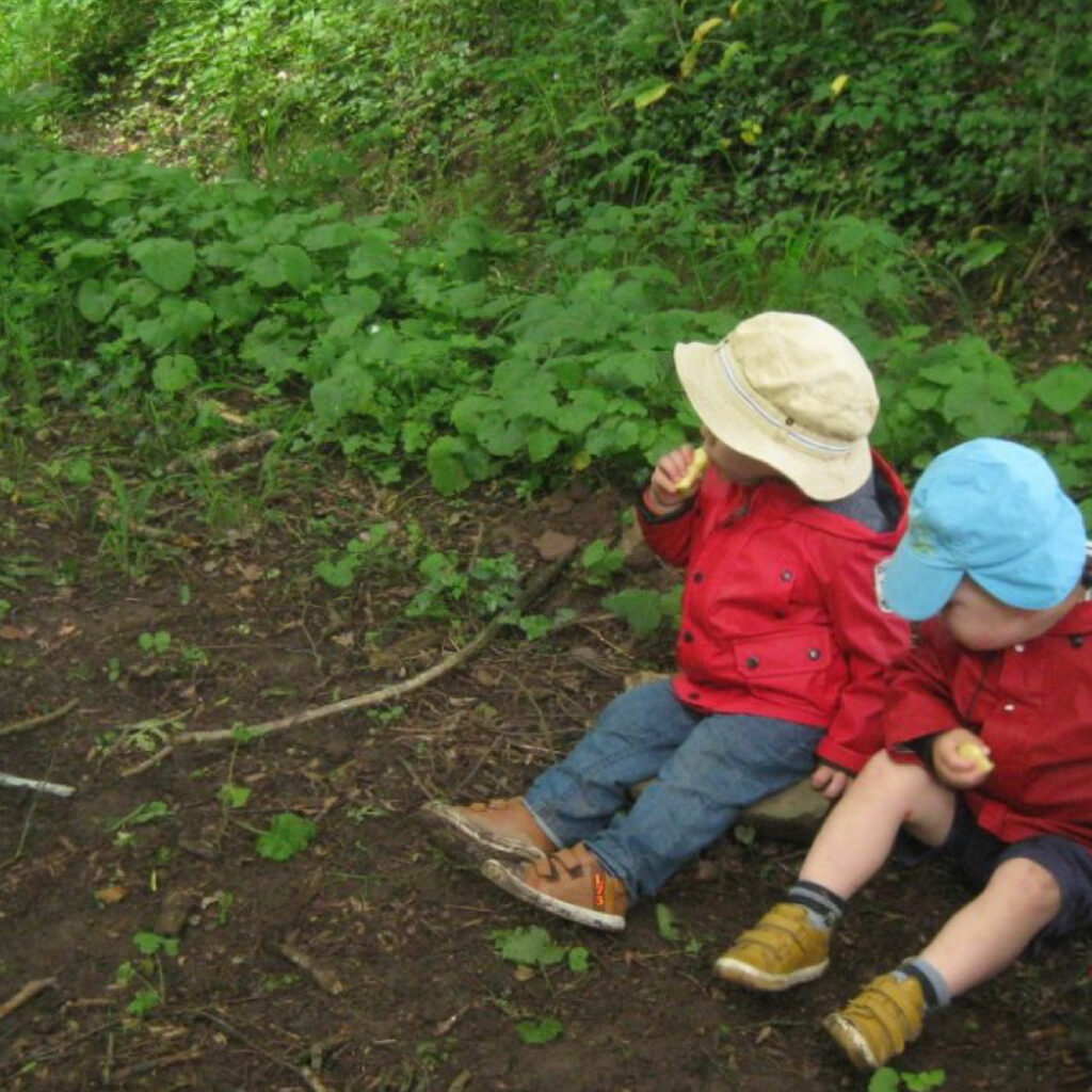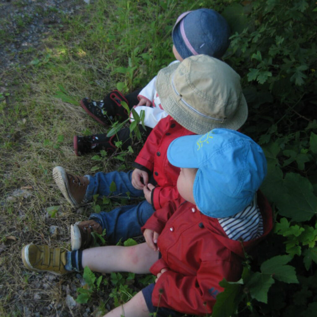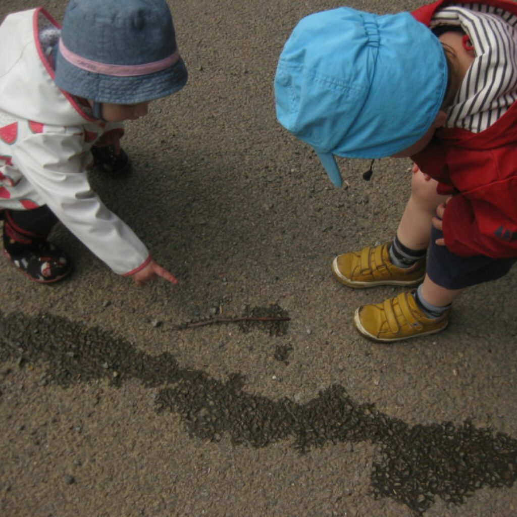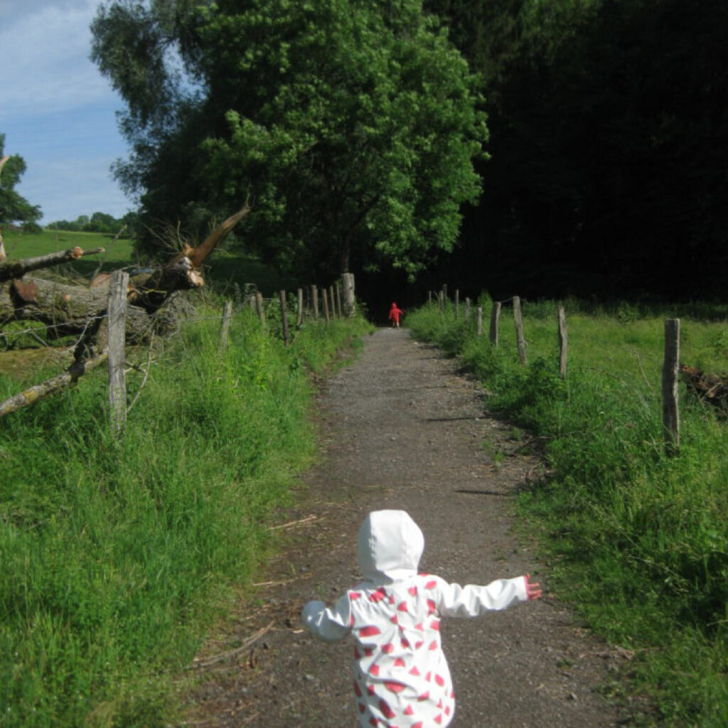En ce début d’été, les grands du milieu d’accueil profitent de l’absence des autres copains partis en vacances ou en visite chez le médecin, pour se balader aux alentours. Nous avons enfin découvert le manège, inaccessible en poussette, et la forêt qui s’étend derrière celui-ci. Lors de la première promenade Odile et Adrien ont eu peur des chevaux : ils sont plus grands de près que lorsqu’on les aperçoit de loin. Le choc a été d’importance ! La deuxième fois c’était mieux mais c’est Alexandre qui était impressionné. Heureusement, la troisième rencontre s’est passée sans problème. Un bout de bois ramassé sur le bord du chemin nous sert de bâton de marche. Nous avons traversé un ruisseau, écouté les bruits de la forêt, découvert des cloportes sous des feuilles, sauté à partir d’une souche, nous nous sommes étendus sur le dos pour admirer d’en bas la cime des arbres noyés de soleil, avons aidé un vers de terre à traverser la route en versant de l’eau devant lui… Au milieu de notre périple nous nous arrêtons sur une branche d’arbre, une souche ou une pierre pour manger la collation : des quartiers de fruit (pomme ou poire) et un verre d’eau. A la fin de notre deuxième expédition, nous avons eu l’immense plaisir d’assister au débarquement d’un camion de matériaux de construction ! Le charriot élévateur a fait devant nos yeux ébahis quatre ou cinq aller-retours avec des palettes de carrelage. De longues et magnifiques randonnées…