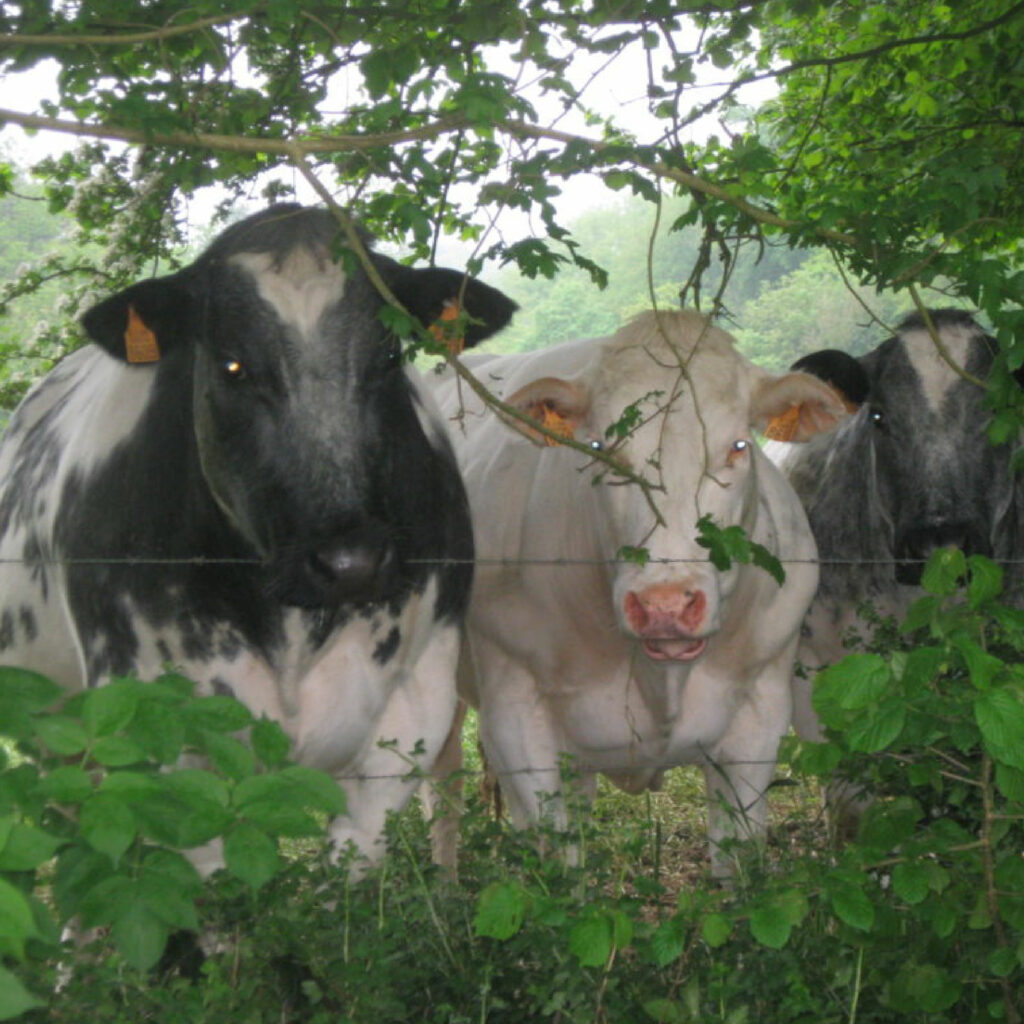 Nous sommes surpris au détour de la ruelle de voir les vaches dans le pré tout au bout. Et hop une petite course pour aller les examiner de plus près. Nous les observons brouter et s’abreuver ; il y en a même une qui tousse en buvant ! Odile et Alexandre sont impressionnés et pleurent un peu quand je m’éloigne pour retourner (c’est vrai qu’elles sont grandes). Oh! Victoria s’est endormie…