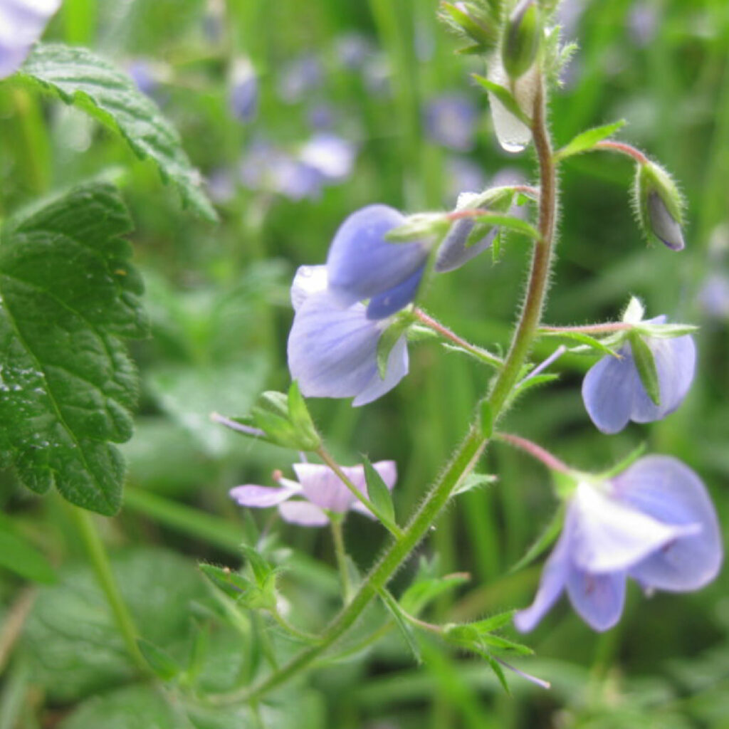 Sur le chemin du retour nous observons la kyrielle de jolies fleurs printanières le long des haies : véronique petit chêne, boutons d’or, angélique, aubépine, lierre terrestre, petite benoite, stellaire… Vanessa et ses trois chiens nous croisent et juste après, un gros 4×4 et sa remorque. Le véhicule s’arrête quelques mètres derrière nous. Nous suivons la descente de la remorque, du rouleau compresseur et du tracteur suivi de son scarificateur. Ensuite nous rentrons dans notre jardin…